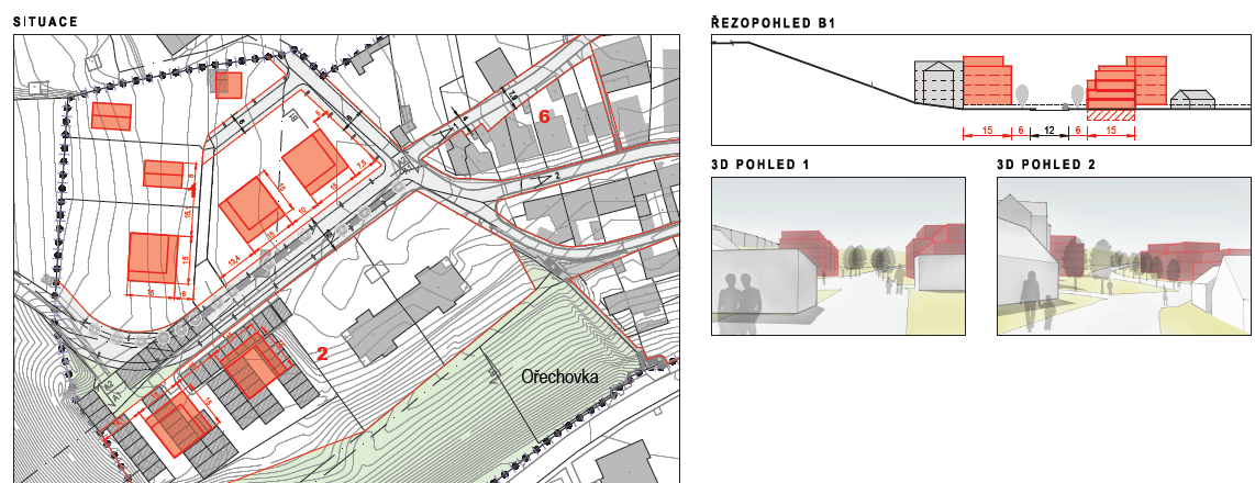 • u odbočky z ulice Čs. armády do ulice V. Burgra bude po pravé straně možné postavit bytový dům až o dvou nadzemních podlažích + podkroví (blok 20)