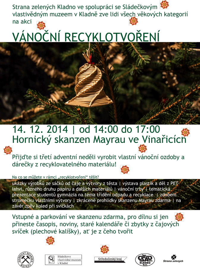 Strana zelených Kladno ve spolupráci se Sládečkovým vlastivědným muzeem v Kladně zve lidi všech věkových kategorií na Vánoční recyklotvoření.